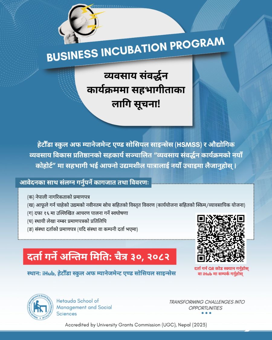 College life was one of the most remarkable and lovable times of mine. I think college life exposes us to whole new experiences which we always dream of experiencing after our school life. I feel lucky to enjoy my chance at college life in Hetauda School of management as many people don't get this opportunity. Hetauda school of management, however, is more than just attending classes. and getting good grades. It's a combination of discovery, involvement, and enjoyment and activities in and out of the classroom are part of shaping the complete experiences.
